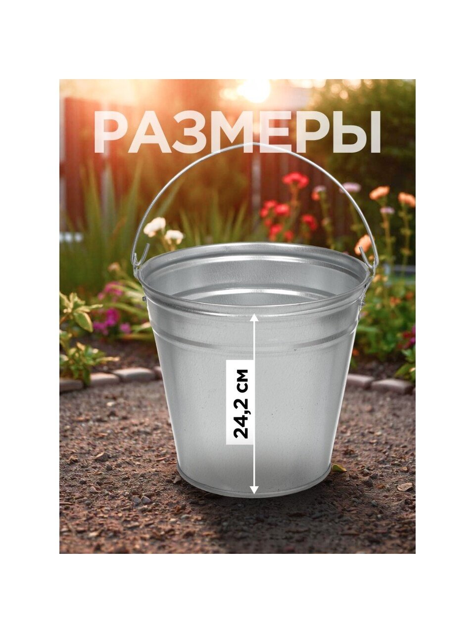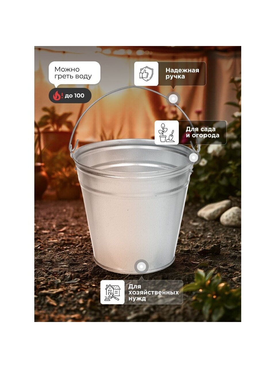 Оцинкованное хозяйственное ведро подойдет для бытовых нужд и строительства. От коррозии металл надежно защищен толстым слоем цинка. Жесткая металлическая рукоять оптимальна для переноски и надежно закреплена в петлях. Дополнительная обкатка повышает жесткость конструкции. В данном ведре можно греть воду. Максимальная температура выдержки - 100°С.