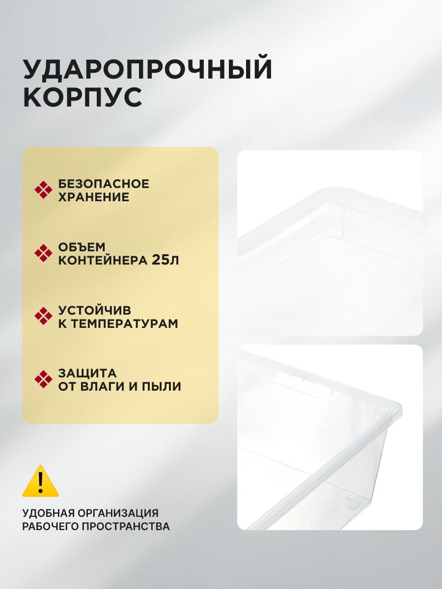 Вы можете приобрести «Ящик хозяйственный 25 л, 53х37х18 см, с крышкой, прозрачный, Idea, М 2353» и другие товары в нашем интернет-магазине в Липецке по низким ценам и с бесплатным самовывозом.
