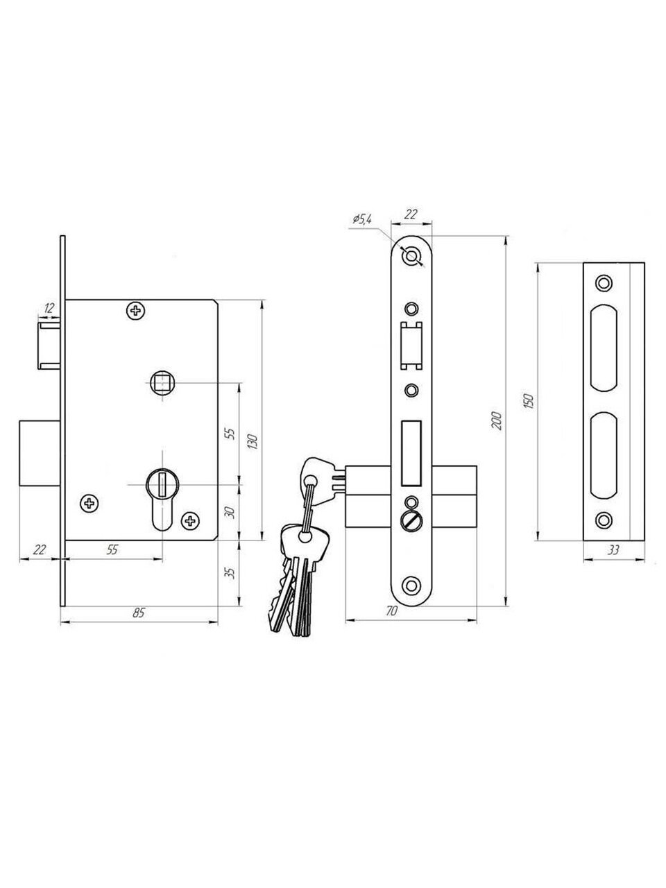 Замок врезной с ручками Зенит-ЗВ4-3.07 предназначен для установки на полотна входных дверей толщиной 40-55 мм. В оснащение замка входит верхняя реверсивная защелка, приводимая в действие фалевой ручкой либо цилиндровым механизмом, и ригель прямоугольной формы, ход которого составляет 22 мм. Во внутреннюю планку встроен дополнительный механизм запирания защелки. Корпус замка изготовлен из стали, ручки классического дизайна произведены из алюминиевого сплава с декоративным финишным покрытием. Защелка замка изменяемого положения сторон: на правую и левую дверь.