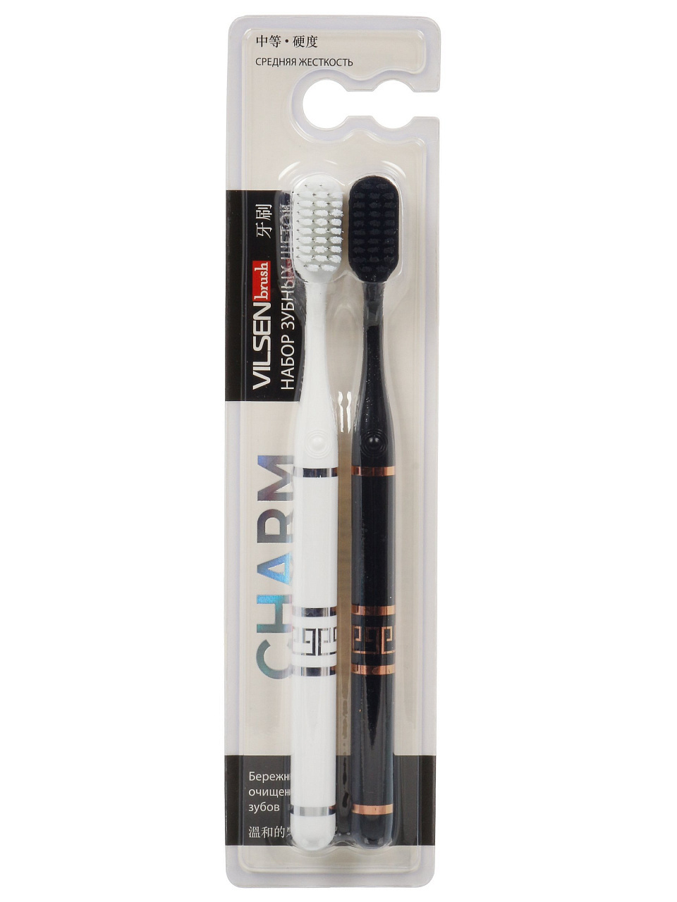 Зубная щетка Vilsen Charm (2 шт.): идеальная средняя жесткость для здоровья десен и чистоты эмали. Выгодный комплект для всей семьи.