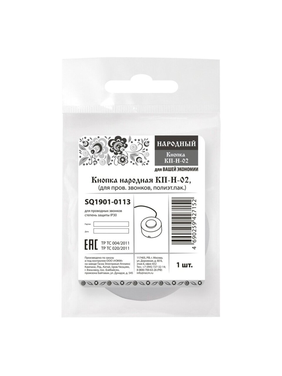 Вы можете приобрести «Кнопка звонка кнопка IP 30, для проводных звонков, TDM Electric, Народная КП-Н-02, SQ1901-0113» и другие товары в нашем интернет-магазине в Смоленске по низким ценам и с бесплатным самовывозом.
